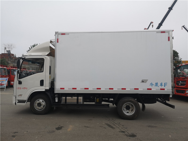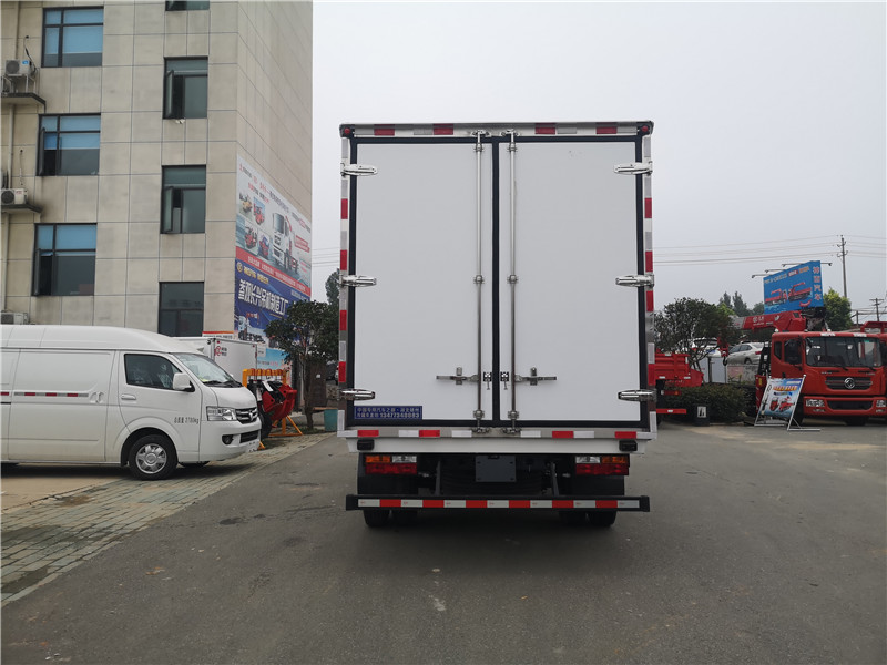 箱體內外玻璃鋼,8cm高密度保溫板,底板防滑花紋鋁板,箱體加固做4排肉鉤導軌,配60個肉鉤,加裝華泰-15度制冷機組,帶單側門。