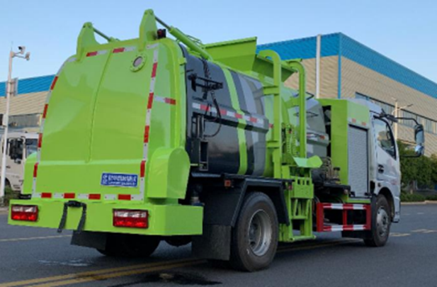 工作原理:整車為全密封型,自行壓縮、自行傾倒、壓縮過(guò)程中的污水全部進(jìn)入污水箱,徹底的解決了垃圾運(yùn)輸過(guò)程中的二次污染,具有壓力大、密封性好、操作方便。安全等優(yōu)點(diǎn)。垃圾箱可實(shí)現(xiàn)箱內(nèi)餐廚垃圾固液的初步分離,并采用大容積污水箱,提高產(chǎn)品裝載量; 電控系統(tǒng)采用無(wú)線遙控,并通過(guò)作業(yè)動(dòng)作邏輯互鎖,保證操作的精準(zhǔn)性,杜絕誤操作。