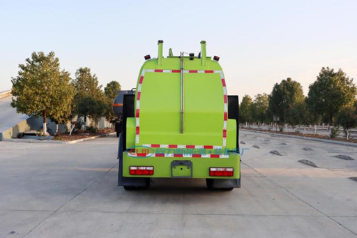配置急停開關,遇到緊急情況按下急停開關可快速停止上裝的所有動作。駕駛室內中控屏與尾部作業 面板相互軟件邏輯互鎖,防止兩處人員操作干擾發生安全事故。 箱體后端設置安全棒,當后門舉升起來需要維修時,支起安全棒,防止安全事故發生。 語音報**提示音,車輛在做后門開啟、關閉時通過語音播報器發出安全提示音,**示旁邊人員注意安全。