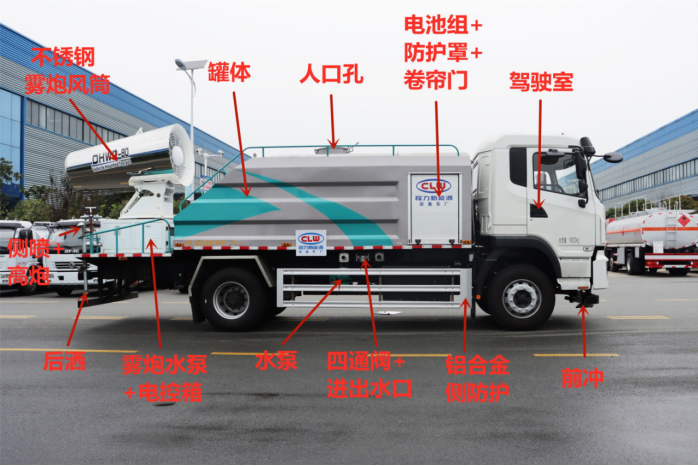 (5) 霧炮機組直接由底盤電池提供動力,沒有副發電機組,比傳統柴油車更節能,大大降低噪音污染。